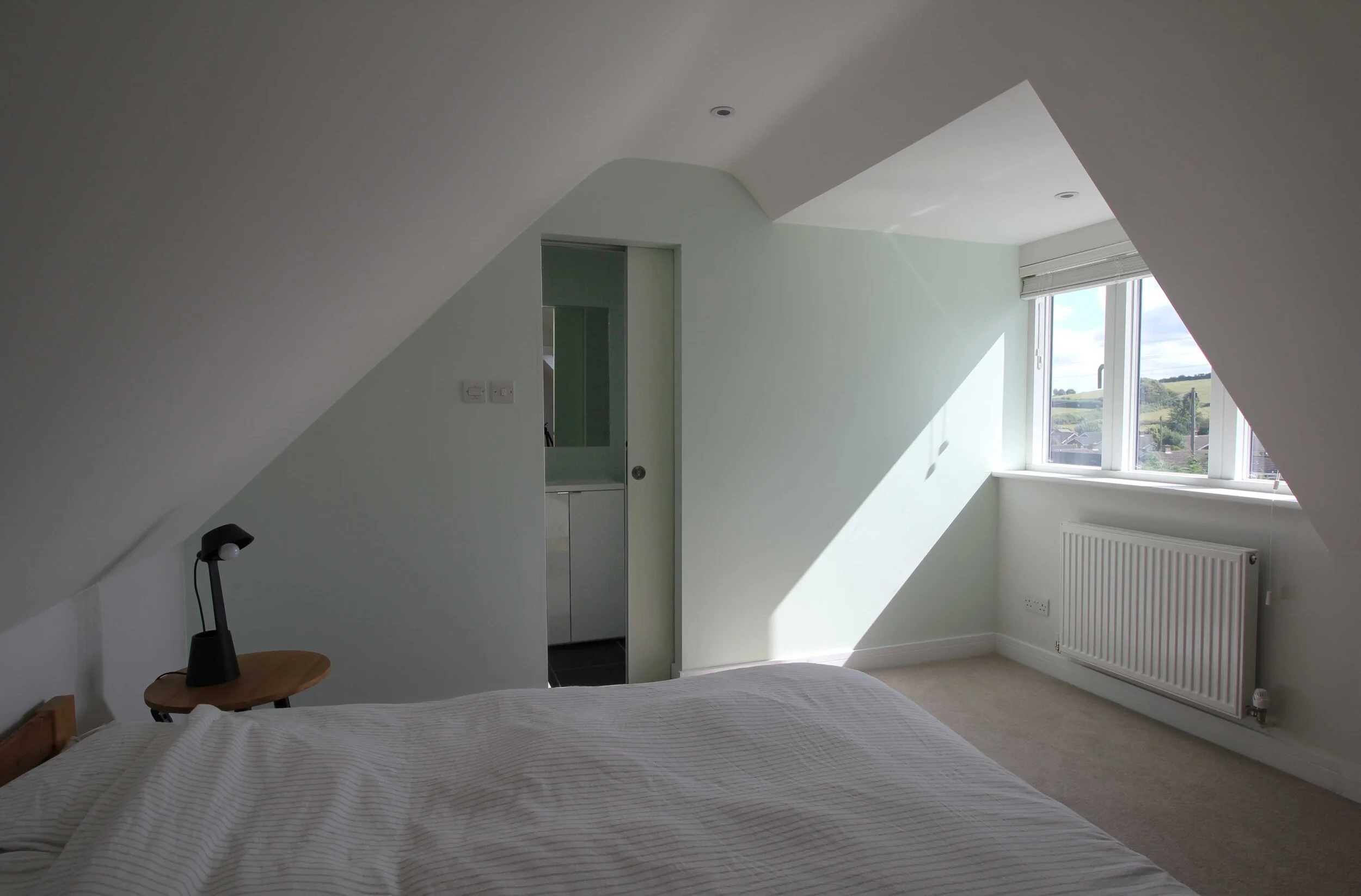Inside, we delivered a full internal fit-out including bespoke joinery throughout — made-to-measure shelving, fitted wardrobes, and custom vanity units — all designed and built to suit the new layout.